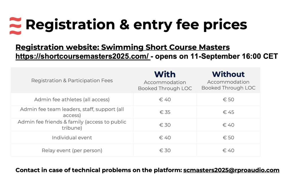 Za navedeno natjecanje, kao i za sva ostala Europska i Svjetska masters natjecanja, morate biti registirirani u Hrvatskom plivačkom savezu.
